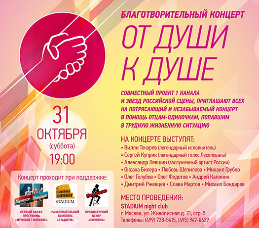 31 октября 2015 Благотворительный концерт "От души к душе" Благотворительный концерт "От души к душе" в Москве.