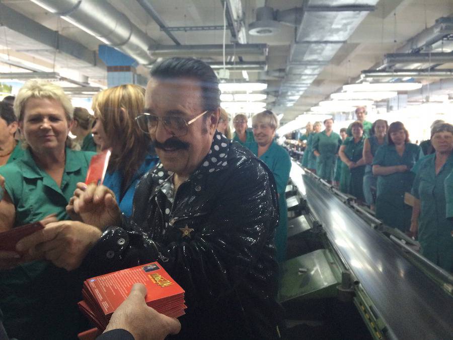 Там работают тысячи обаятельных женщин. А то, что я увидел, глядя на продукцию, которую производят на этой фабрике, меня просто поразило, - это разнообразный ассортимент высочайшего качества и вкуса. К моей неожиданности мне подарили обувь, в которой я вечером уже пел на концерте, настолько она великолепна и удобна!